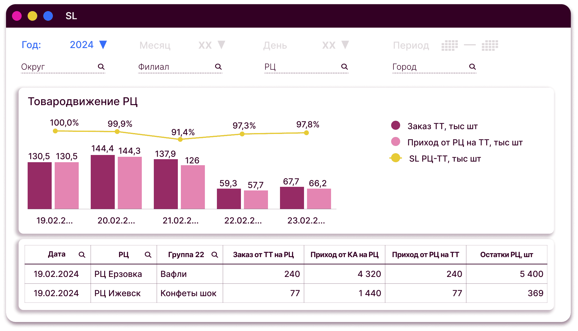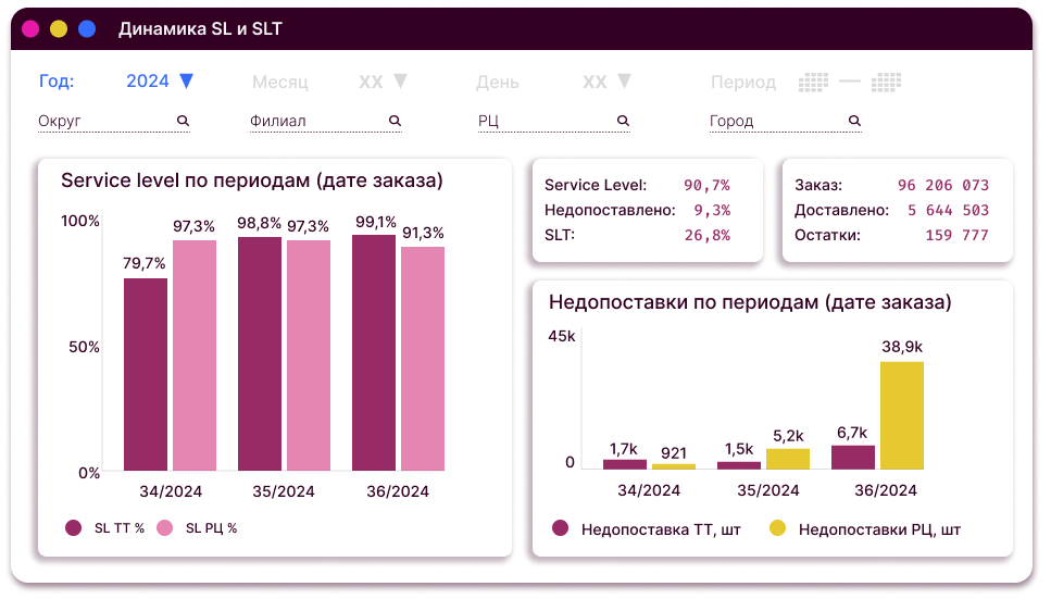 Динамика SL (уровень сервиса) на РЦ